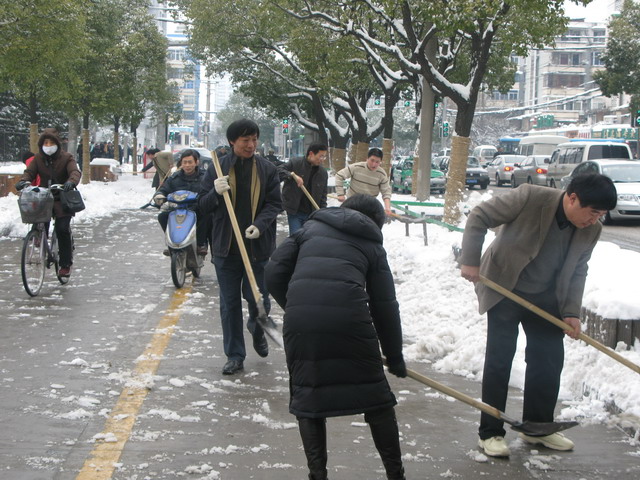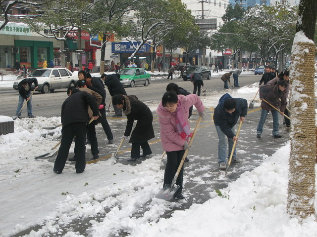 2008年元月下旬合肥地區(qū)連降暴雪,道路積雪嚴(yán)重,給交通帶來諸多不便。為響應(yīng)市政府關(guān)于全市大掃雪的倡議,1月26日至28日,建投集團全體人員在董事長李武好的率領(lǐng)下連續(xù)三天進行義務(wù)掃雪除冰活動。