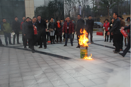 隨后集團公司組織員工在建投大廈內(nèi)部開展消防應急預案演練。隨著急促緊促的警報聲響起,頓時消防通道內(nèi)濃煙滾滾,大廈內(nèi)員工迅速在疏散員引導下彎著腰,用毛巾捂著嘴、緊靠墻邊,從大廈南北二側(cè)安全通道快速有序的向安全地帶疏散。接著,全體員工在建投大廈南廣場開展了滅火器撲救油盆火災的實地演練。