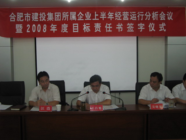 7月23日下午,集團公司所屬企業(yè)上半年經(jīng)營運行分析會議暨2008年度目標責任書簽字儀式在301會議室召開。集團公司領導王昌旭、吳曉東、陸勤航、程世琴,市國資委業(yè)績考核處處長汪浩、稽查員許國漢,八家所屬企業(yè)全體領導班子成員及集團公司相關部門負責人參加會議。會議由集團公司副總經(jīng)理吳曉東主持。