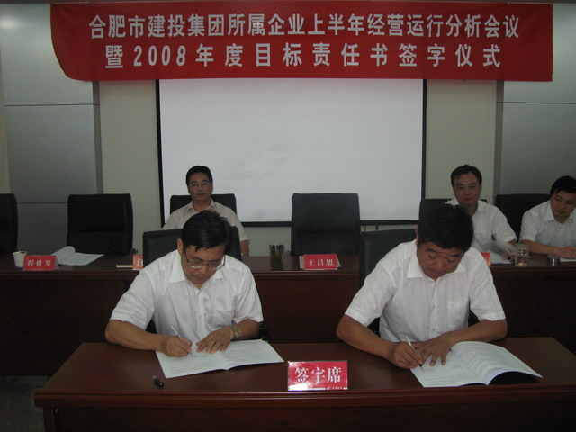 隨后,集團公司副總經(jīng)理王昌旭代表集團公司分別與國路高速、工程監(jiān)測中心、市政設計院、建筑設計院、勘察院、通卡公司、綠泉園林和國際花卉八家企業(yè)簽訂2008年度目標責任書。