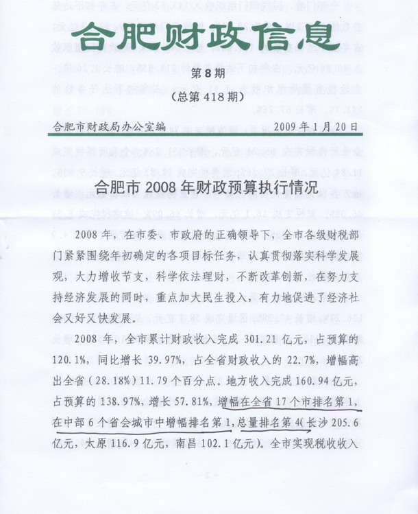 合肥市2008年財政預算執(zhí)行情況