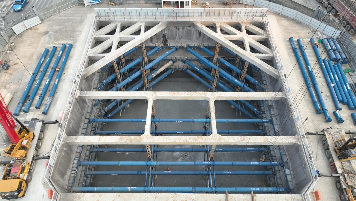 為順利推進(jìn)施工,克服工程難點(diǎn),施工前期,建投集團(tuán)所屬城投公司項(xiàng)目辦組織監(jiān)理、施工等單位采取模擬推演風(fēng)險(xiǎn)源、優(yōu)化土方開挖方案、組織協(xié)調(diào)工序銜接、優(yōu)化施工空間布置等措施,于3月14日正式開始土方開挖。在遵循 “先撐后挖、水平分段、豎向分層”原則及“分層、分步、對(duì)稱、平衡、限時(shí)”要點(diǎn)的基礎(chǔ)上,保障基坑施工安全的同時(shí),于4月19日順利完成墊層澆筑,為后續(xù)主體結(jié)構(gòu)施工創(chuàng)造良好的條件。