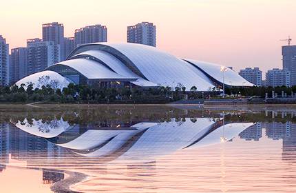 合肥大劇院位于政務(wù)文化新區(qū)天鵝湖北岸,總投資6.5億元,占地面積8.2萬(wàn)平方米,建筑面積6萬(wàn)平方米,主要由歌劇院、音樂(lè)廳、多功能廳三部分組成。歌劇院以演出大中型歌劇、舞劇為主,話劇為輔,按1600座設(shè)計(jì),輔之站位可容納1700人;音樂(lè)廳按可以進(jìn)行三管制大型交響樂(lè)及民樂(lè)演出標(biāo)準(zhǔn)設(shè)計(jì)建設(shè),可容納1008人;多功能廳以表演特色劇種和小型演出為主,附設(shè)電影放映、時(shí)裝發(fā)布及會(huì)議功能,按照520座設(shè)計(jì)。合肥大劇院于2005年12月開(kāi)工,2009年10月竣工投入使用。